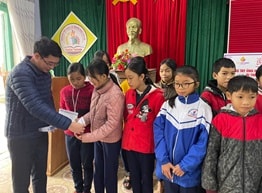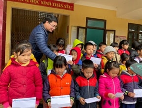 Giám đốc Tài chính – Nhân sự đại diện công ty Năng Lực Việt trao quà cho các em học sinh