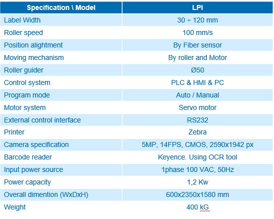 Sử dụng máy in Zebra chuyên dụng, cho chất lượng in hoàn hảo. Nhãn sau khi in được kiểm tra bằng camera và đầu đọc Barcode. Nếu đúng thông tin theo mẫu sẽ được cuộn lại để chuyển vào dây chuyền dán nhãn. Thông tin thu nhận được từ đầu đọc Barcode được xử lý bằng phần mềm trên máy tính đã tích hợp.
