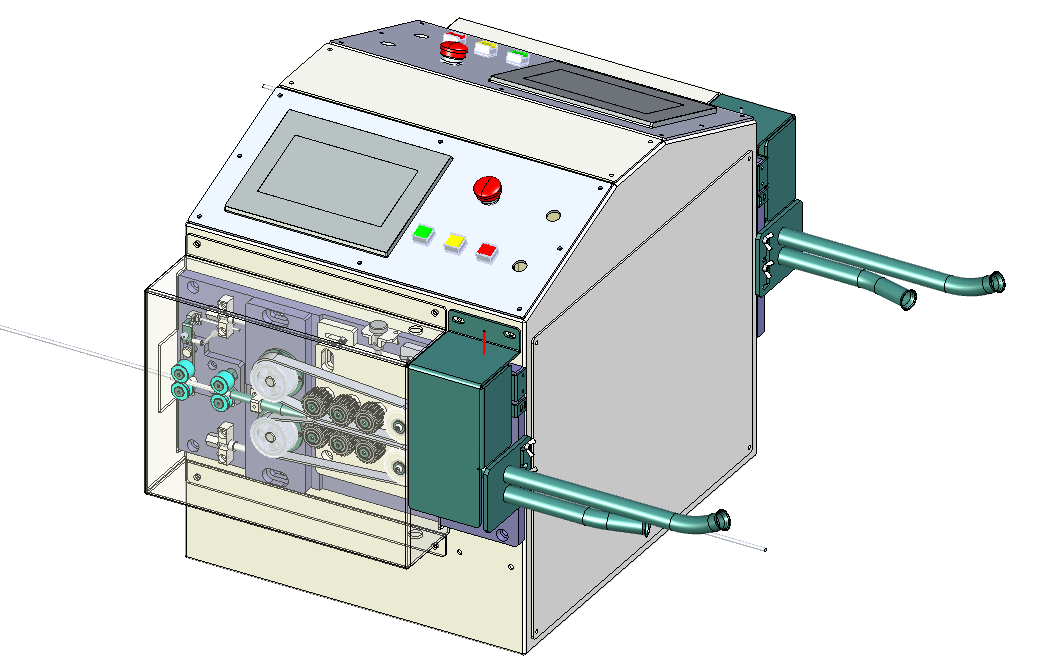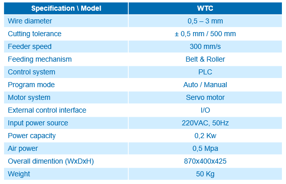 Máy cắt dây được VCC thiết kế và chế tạo sử dụng hệ con lăn và dây đai dẫn động để cấp & đẩy dây tự động với chức năng chính là để cắt các loại dây điện, ống khí nén, vật liệu dạng dây kim loại hoặc phi kim. Máy cài đặt được chiều dài dây cần cắt tùy theo yêu cầu và của từng mã sản phẩm. Máy sử dụng màn hình cảm ứng HMI, được điều khiển bằng PLC nên có thể dễ dàng thay đổi và lập trình tùy thuộc theo yêu cầu của người sử dụng.