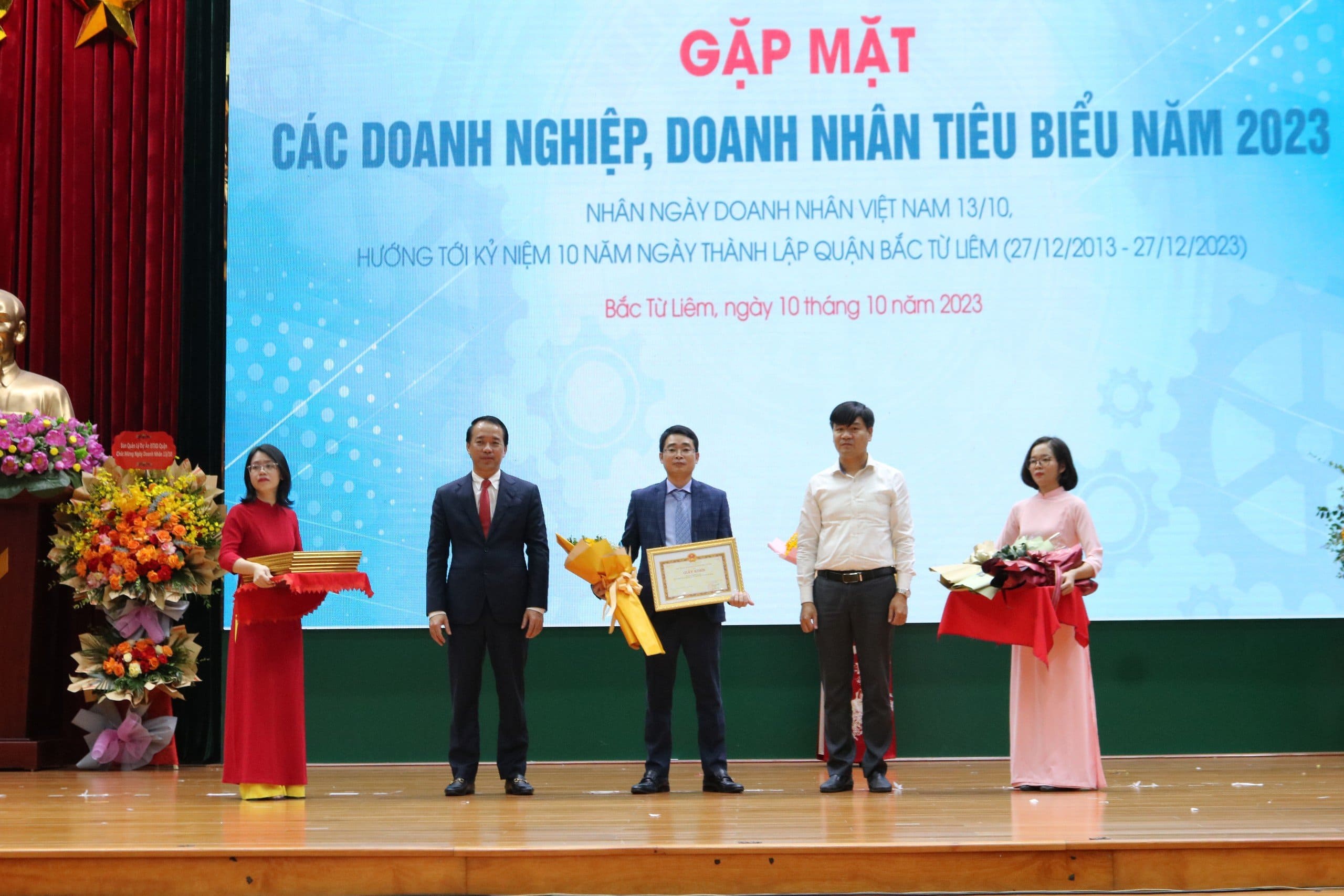 Ngày 10/10/2023 vừa qua, Uỷ ban nhân dân Quận Bắc Từ Liêm đã tổ chức gặp mặt và tôn vinh các doanh nghiệp, doanh nhân tiêu biểu năm 2023, hoạt động này được tổ chức nhân dịp ngày Doanh nhân Việt Nam (13/10) và hướng tới kỷ niệm 10 năm ngày thành lập quận Bắc Từ Liêm.