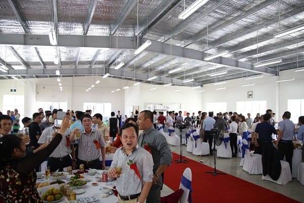 Sau khi tham quan nhà máy cơ khí chính xác, toàn thể CBCNV và khách mời cùng tham gia bữa tiệc chúc mừng lễ kỷ niệm 6 năm thành lập công ty và khánh thành nhà máy mới.