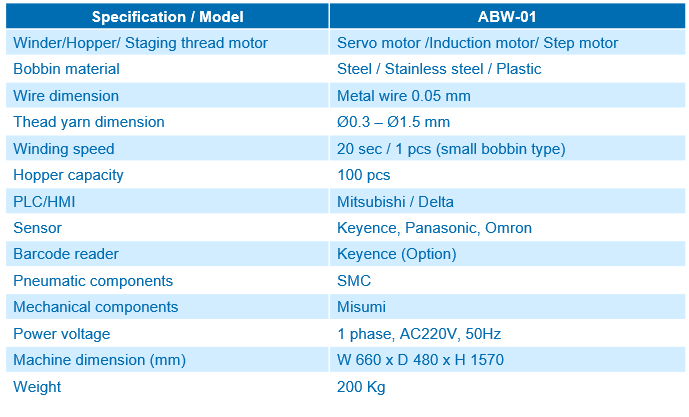 Thông số kỹ thuật của máy quấn sợi