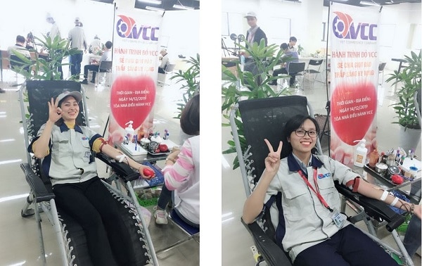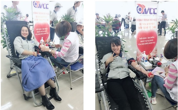 Hiến máu nhân đạo là một hành động thể hiện sự chia sẻ của những người khỏe mạnh với những người bệnh đang cần máu để để điều trị cũng như duy trì sự sống. Tất cả chúng ta, người có sức khoẻ bình thường đều có thể hiến một phần máu của mình để cứu người mà không hề ảnh hưởng đến sức khoẻ. Dưới sự phát động của Công ty, hầu hết các cán bộ công nhân viên đều hào hứng tham gia Ngày hội hiến máu – Hành trình đỏ VCC. Với những nụ cười rạng rỡ mang đầy yêu thương của đông đảo CBNV, buổi hiến máu đã diễn ra an toàn và tốt đẹp.